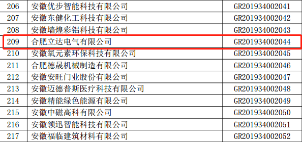 2020年17日,國家科學技術部火炬高技術產業開發中心文件(國科火字[2020]6號)公布通過備案的企業,合肥立達電氣有限公司被認定為國家高新技術企業,并于近日頒發了“高新技術企業證書”,由此我公司正式邁入國家高新技術企業行列。